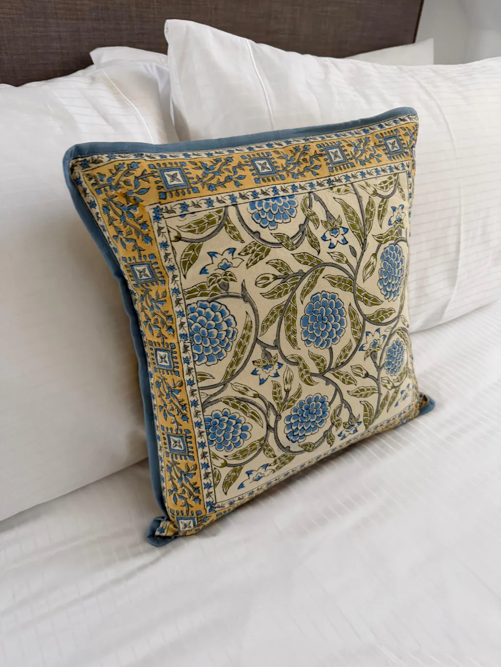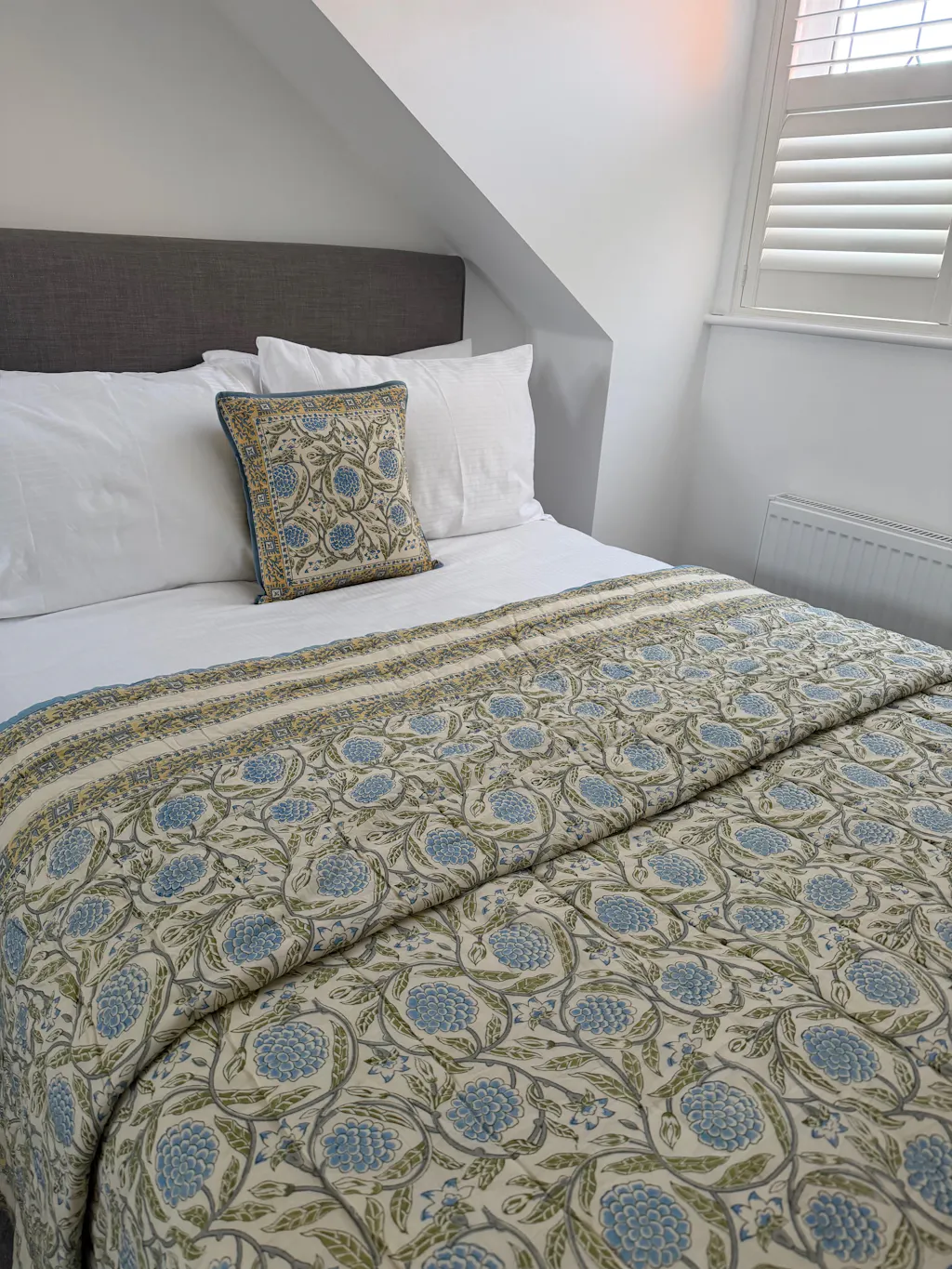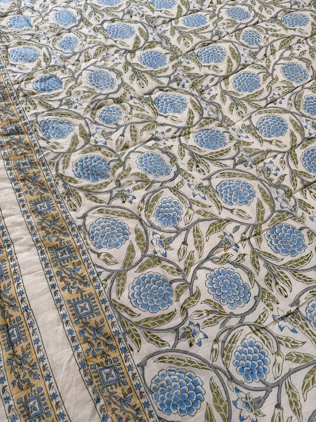 Each intricate pattern is meticulously hand-carved onto wooden blocks, then dipped in vibrant, ethical dyes that are carefully pressed onto the cotton fabric. The result is a stunning design that beautifully captures the essence of Jaipur meets the Cotswolds.